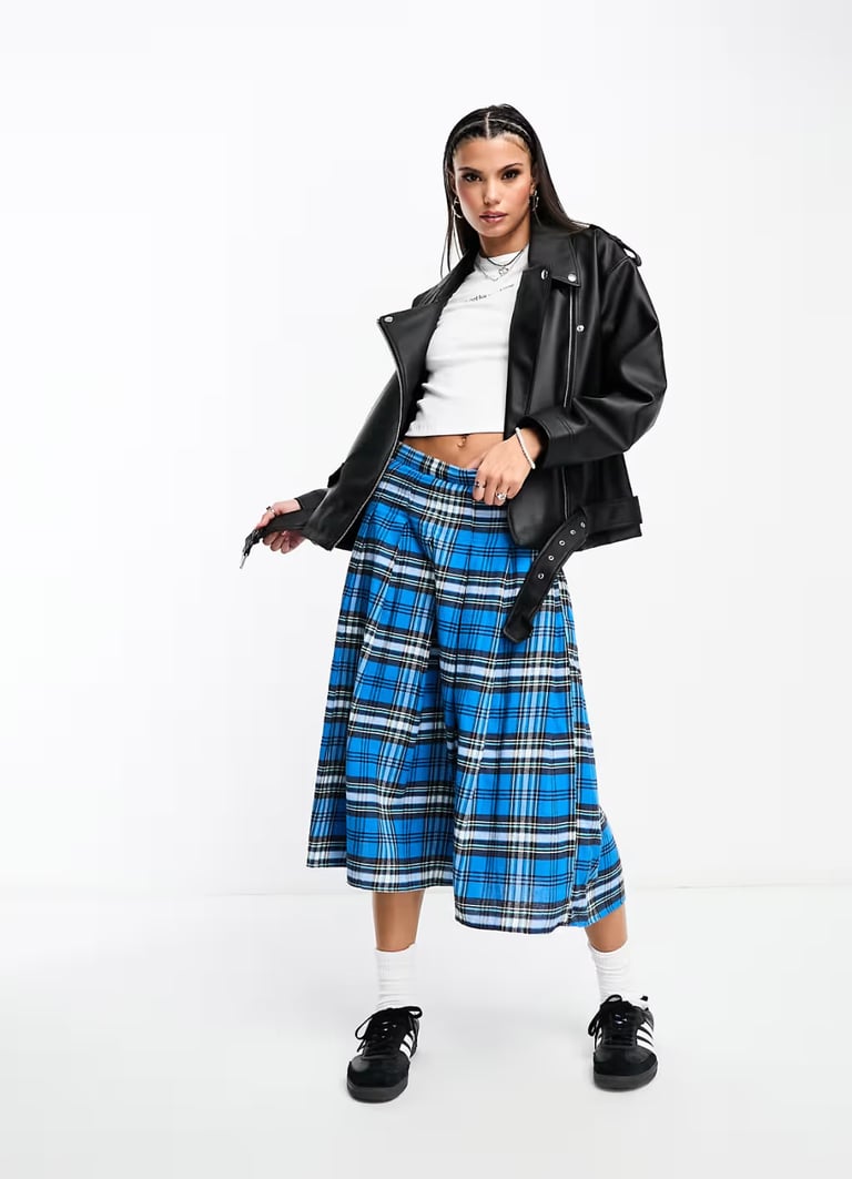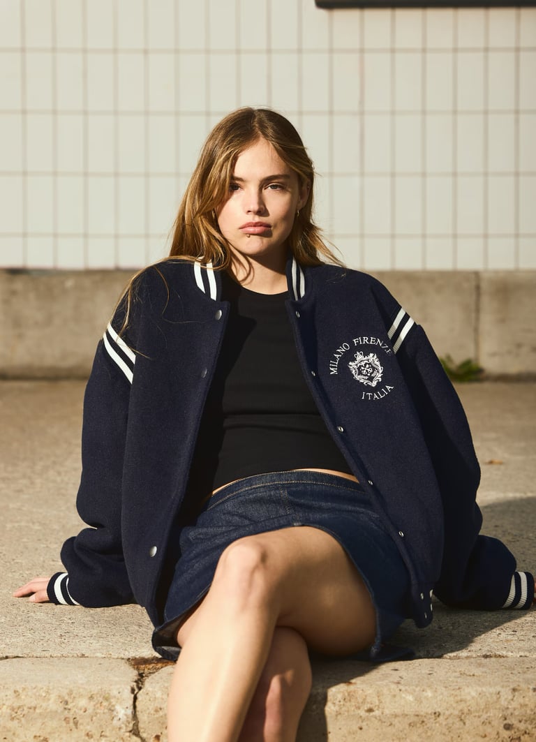 Outfit idea: Throw a varsity jacket over a pleated skirt and graphic tee. Finish with tall socks and loafers for an updated ‘90s collegiate aesthetic.